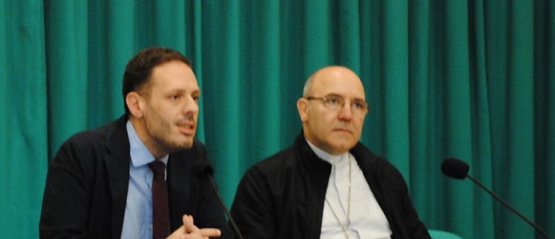 I sei vescovi della Metropolia beneventana, mons. Felice Accrocca (Benevento), mons. Arturo Aiello (Avellino), mons. Domenico Battaglia (Cerreto Sannita – Sant’Agata dei Goti-Telese), mons. Pasquale Cascio (Sant’Angelo dei Lombardi-Nusco-Bisaccia), mons. Sergio Melillo (Ariano Irpino-Lacedonia), dom Riccardo Luca Guariglia (abate di Montevergine), i circa duecento politici campani e trenta sindacalisti sono scesi dalla collina della Pace di Benevento, dopo i lavori del primo Forum degli amministratori campani sul tema: “Consapevolezza, start up di comunità e dialogo tra territori”, con proposte concrete. Il Forum partito dalla lettera-documento “Mezzanotte del Mezzogiorno?”, a maggio scorso, con la quale i vescovi hanno lanciato l’allarme sulle difficoltà sociali ed economiche nei territori su cui insistono le diocesi affidate alle loro azioni pastorali. Prima tra tutte, lo spopolamento con tutte le conseguenze. E così i vescovi hanno chiamato a raccolta gli amministratori campani e le parti sociali per avviare insieme azioni e cercare possibili soluzioni. Dopo la relazione dell’economista, Luigino Bruni, si sono approfondite quattro tematiche: ambiente, paesaggio e cura del creato; welfare, servizi e accoglienza; il futuro nella storia, tradizioni, arte e beni culturali; i flussi delle persone e i capitali. Si sono analizzati progetti, criticità e proposte e prendendo come modello i vasi comunicanti si è giunti, insieme, alla meta. Infatti a conclusione dei lavori si è ufficializzato con la Regione Campania l’istituzione del Patto dei cammini, cioè un Tavolo regionale per le aree interne. A dare l’annuncio, insieme all’arcivescovo di Benevento mons. Accrocca, è stato Francesco Todisco, (in foto con mons. Accrocca) consigliere delegato del Presidente della Giunta regionale alle “Aree interne”: «Questa tre giorni ha registrato un fatto nuovo e politicamente rilevante mettendo insieme gli amministratori delle aree interne e qui comunico la costituzione di un Tavolo permanente per lo sviluppo delle aree interne».
