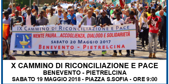 Una marcia di 13 chilometri da Benevento a Pietrelcina per sensibilizzare sul “lavoro e l’esclusione sociale”. E’ per sabato 19 maggio 2018 l’appuntamento con l’atteso e ormai tradizionale appuntamento del “Cammino di Riconciliazione e Pace Benevento–Pietrelcina” che è giunto ormai alla sua decima edizione. L’evento, organizzato e promosso dalle Acli–sede provinciale di Benevento, dal Comune di Benevento, dal Comune di Pietrelcina, dall’Arcidiocesi di Benevento con il patrocinio della Regione Campania, della Provincia di Benevento e del Forum del Terzo Settore della Campania, è stato finanziato con il 5 per mille delle Acli di Benevento e ha visto l’adesione del Convento dei Frati Cappuccini di Pietrelcina e di San Giovanni Rotondo.