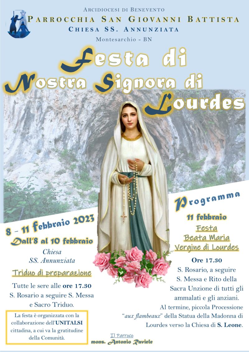 A Montesarchio festa della Madonna di Lourdes Festa della Madonna di Lourdes nella parrocchia S. Giovanni Battista in Montesarchio. Per il programma vedi il manifesto…