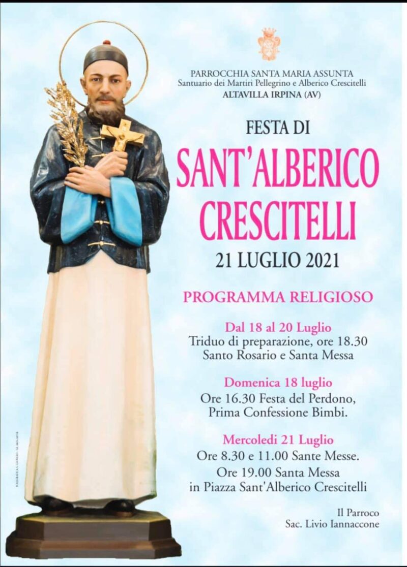 Altavilla Irpina festeggia S. Alberico Crescitelli La comunità di Altavilla Irpina il 21 luglio festeggia S. Alberico Crescitelli. Per il programma vedi il manifesto…