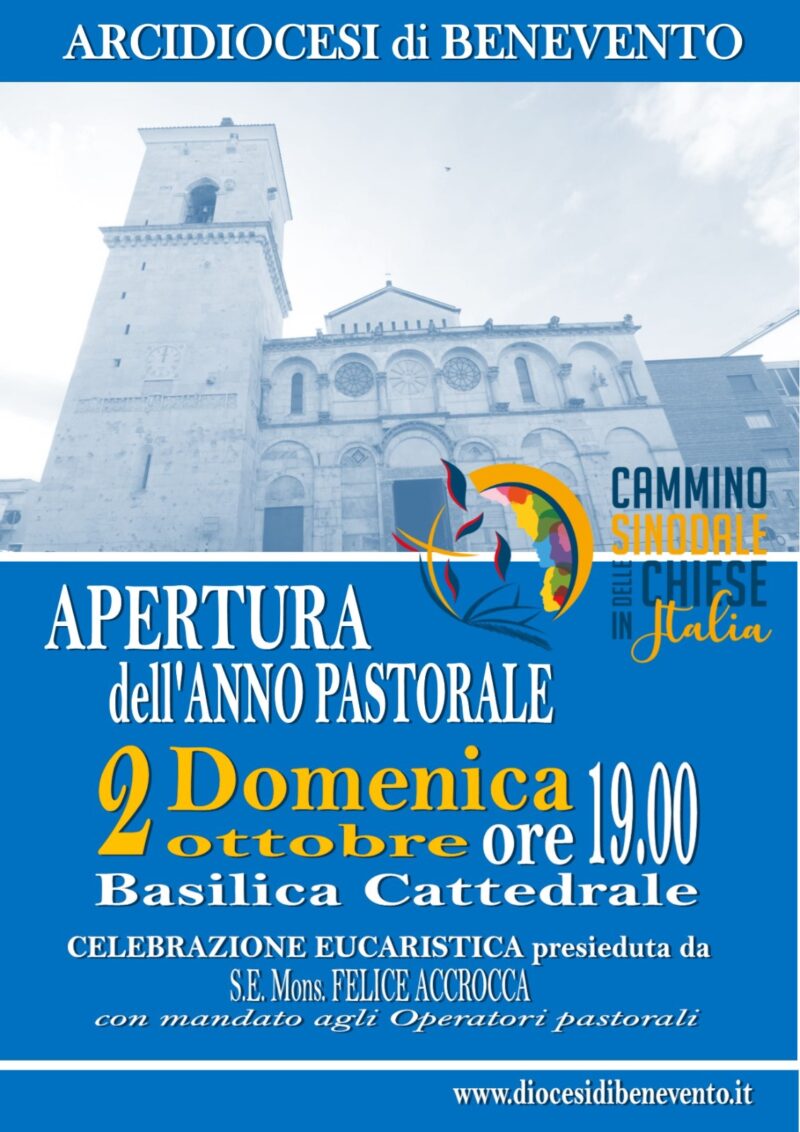 Domenica 2 ottobre alle ore 19,00 l’arcivescovo di Benevento mons. Felice Accrocca presiederà in Cattedrale la santa messa che segna l’inizio del nuovo Anno Pastorale. L’invito è rivolto a tutti i membri della Chiesa diocesana, chiamata a riflettere sull’importanza della Parola di Dio nella vita cristiana. In quella occasione sarà consegnata a tutti i parroci la relazione sinodale diocesana e le indicazioni pastorali dell’arcivescovo per il prossimo anno.