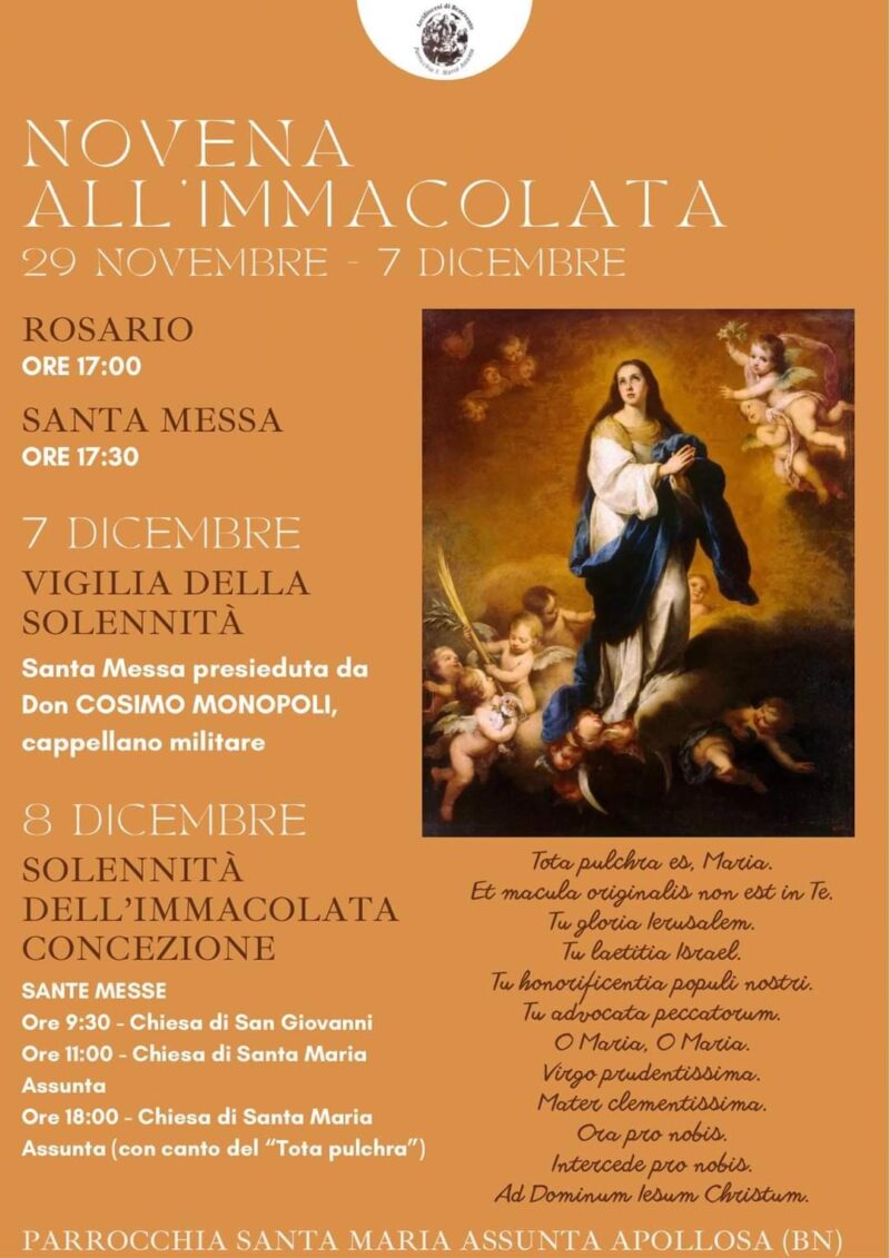 Apollosa: novena all’Immacolata Ad Apollosa dal 29 novembre al 7 dicembre novena all’ Immacolata. Vedi il manifesto
