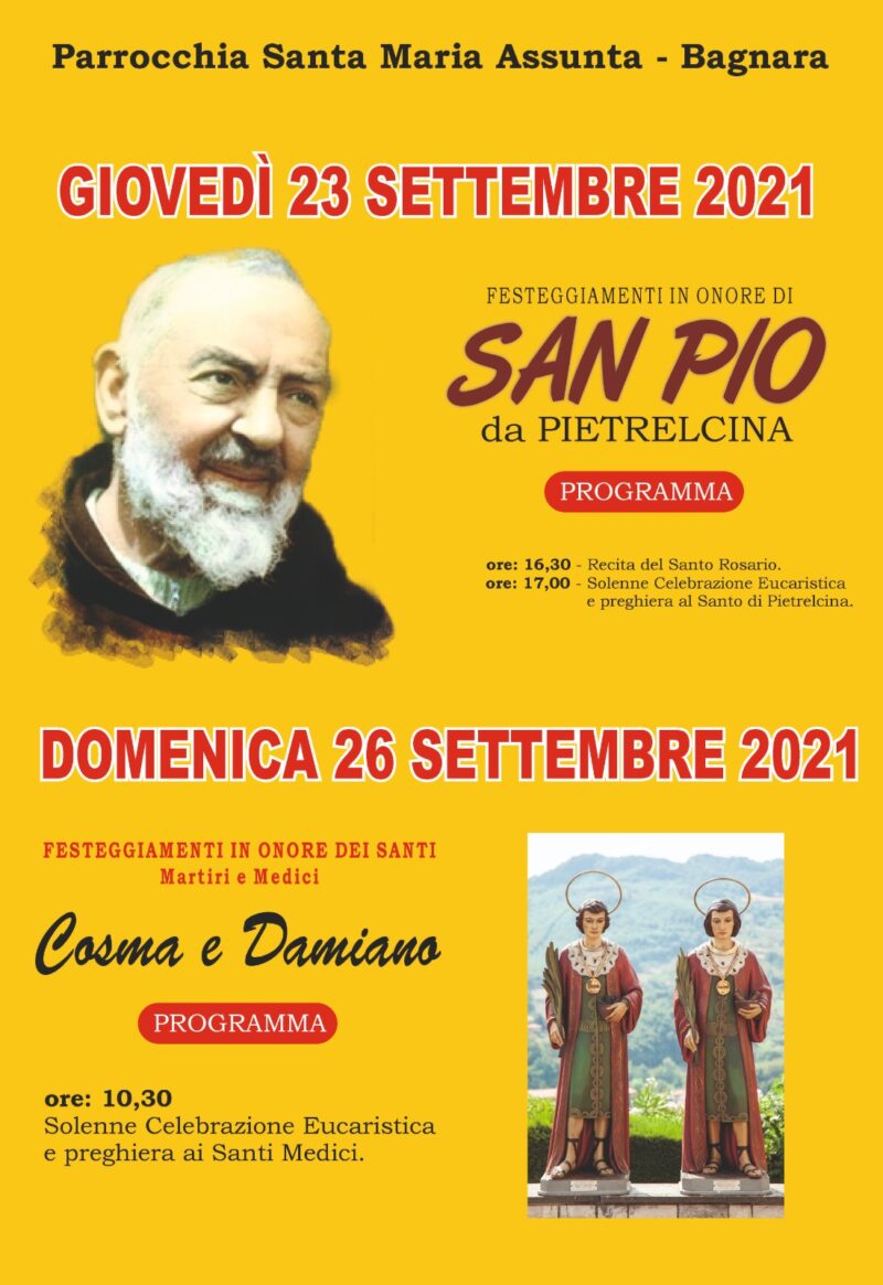 Bagnara in festa per S. Pio, S. Cosma e S. Damiano La parrocchia Santa Maria Assunta di Bagnara, guidata dal parroco don Antonio Bonavita, festeggia S. Pio, S. Cosma e S. Damiano. Per il programma vedi il manifesto…