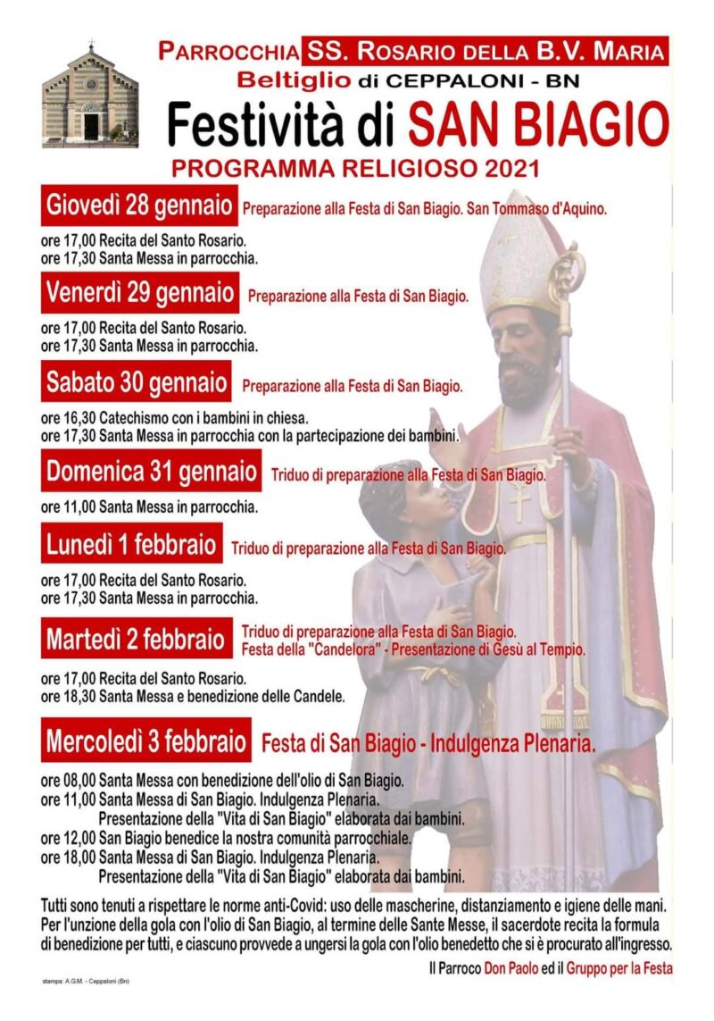 Beltigio, memoria liturgica di San Biagio La comunità di Beltiglio festeggia San Biagio. Per il programma vedi il manifesto…