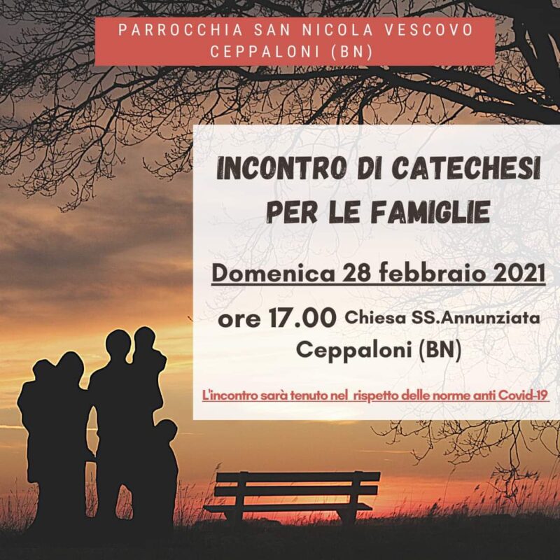 A Ceppaloni incontro di catechesi per le famiglie. Appuntamento domenica 28 febbraio alle ore 17, nella chiesa dell’Annunziata. L’incontro sarà tenuto nel rispetto delle norme anti Covid-19.