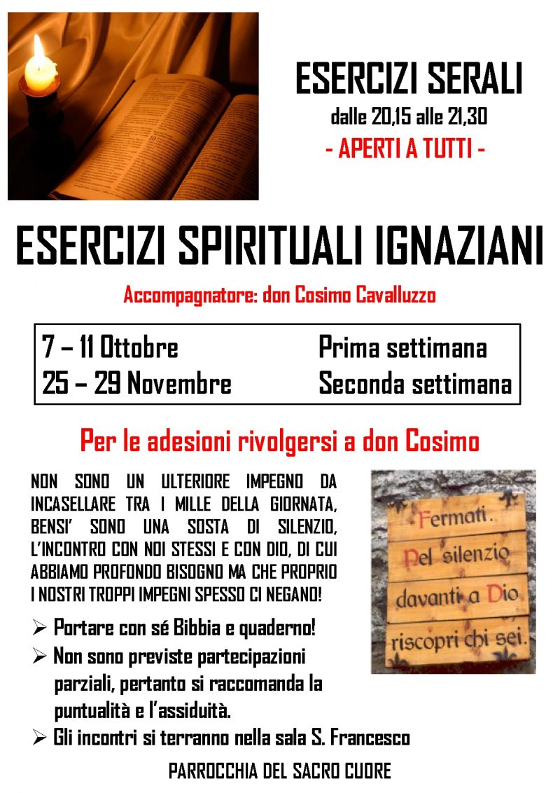 Gli esercizi spirituali ignaziani sono un’esperienza di preghiera, in cui la preghiera si intreccia con la vita. Sono un’occasione per entrare più intimamente nell’incontro a tu per Tu con il Dio vivente. Dal 7 al 11 ottobre, presso la parrocchia del Sacro Cuore in Benevento, don Cosimo Cavalluzzo guiderà la prima settimana ignaziana.