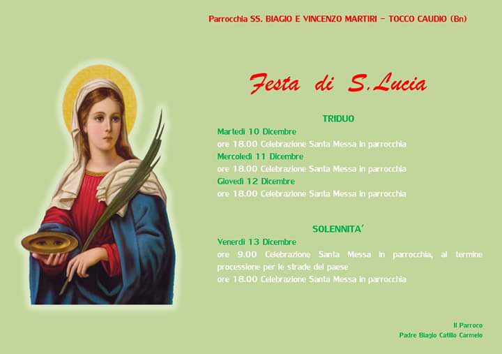La parrocchia dei SS. Biagio e Vincenzo Martiri di Torrecuso festeggia Santa Lucia. Vedi il manifesto allegato…