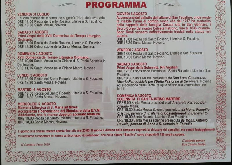 Festeggiamenti in onore di S. Faustino e S. Maria Festeggiamenti in onore di San Faustino Martire e Santa Maria dell’Arco a Pietradefusi. Per il programma vedi il manifesto…