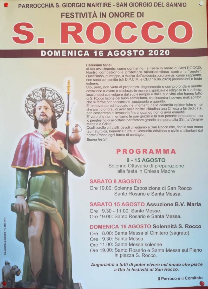 Festività in onore di S. Rocco La parrocchia di S. Giorgio Martire in S. Giorgio del Sannio ha organizzato i festeggiamenti in onore di S. Rocco. Per il programma vedi il manifesto…