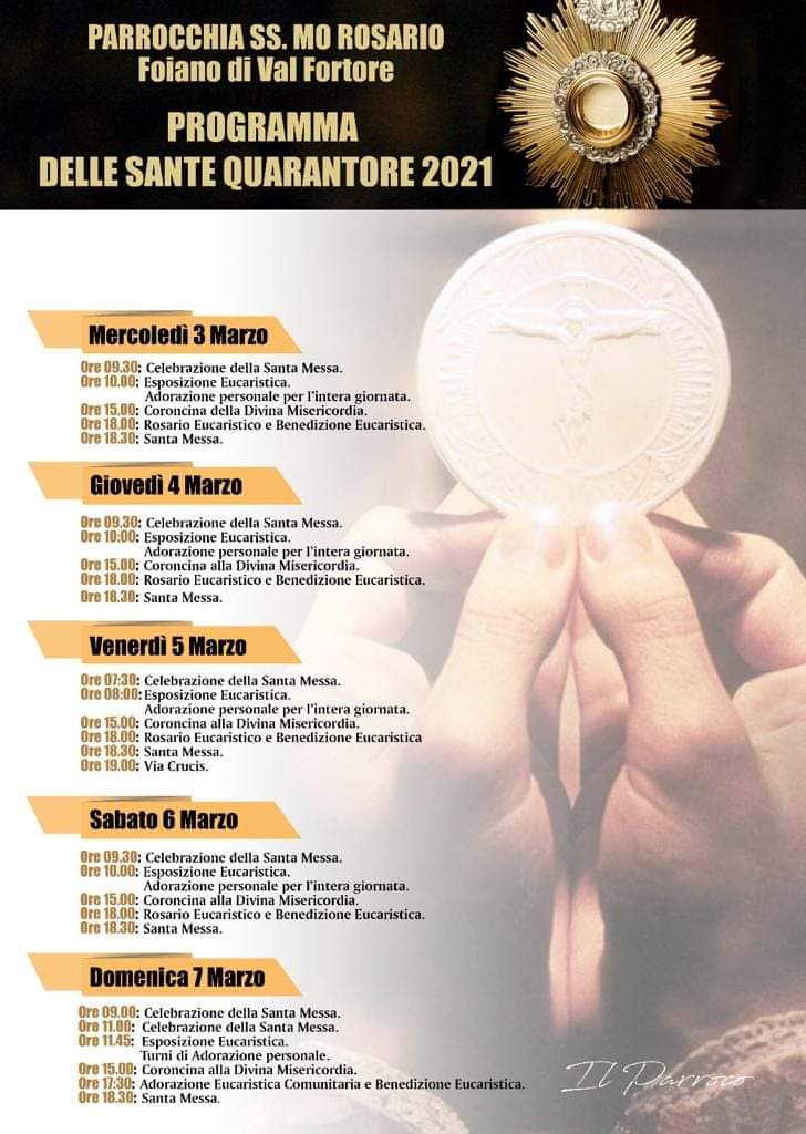 Foiano di Val Fortore: il programma delle sante Quarantore 2021 La parrocchia SS.mo Rosario di Foiano di Val Fortore ha programmato le sante Quarantore 2021. Vedi il manifesto…