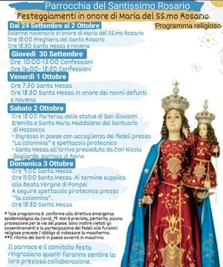 Foiano, festeggia la Madonna del Rosario La comunità di Foiano di Valfortore festeggia la Madonna del Santissimo Rosario. Per il programma vedi il manifesto…