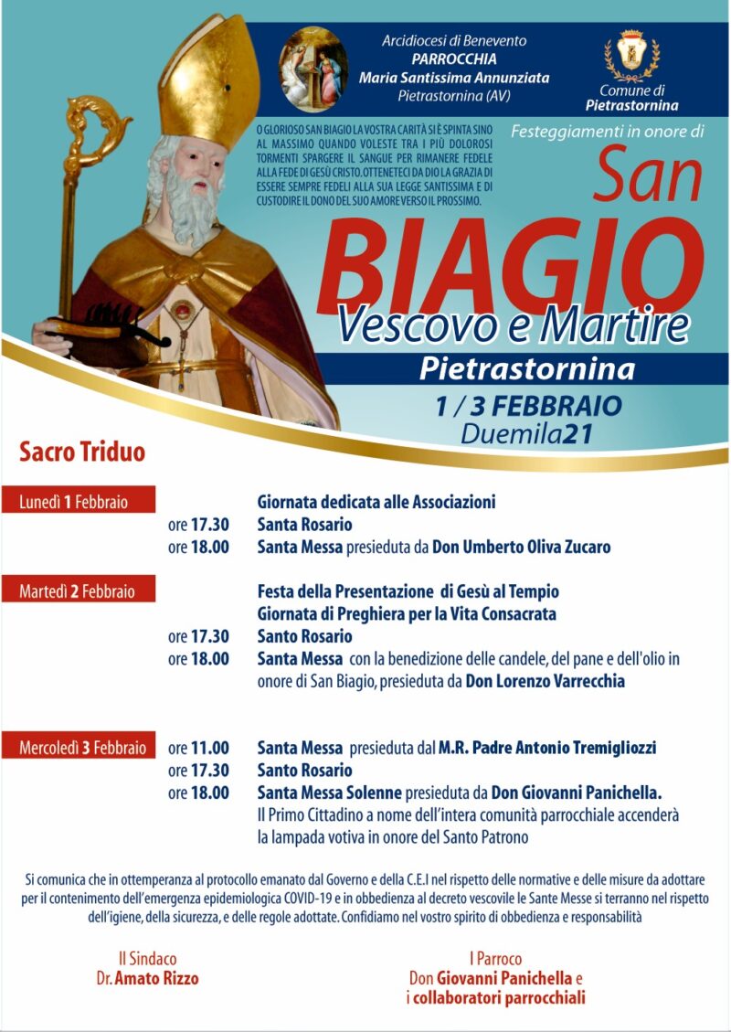 La comunità di Pietrastornina festeggia San Biagio La parrocchia Maria Santissima Annunziata di Pietrastornina festeggia San Biagio. Per il programma vedi il manifesto…