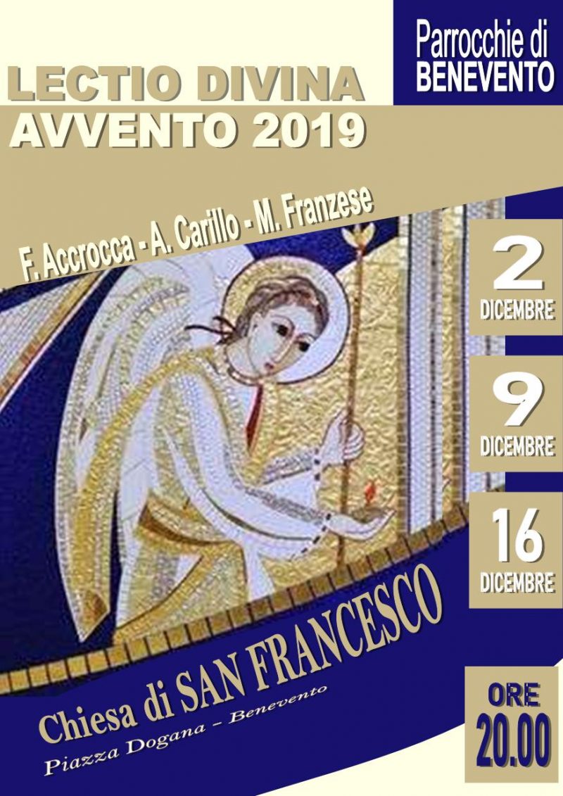 Quest’anno la lectio divina di Avvento non si terrà in Cattedrale ma nella chiesa di San Francesco in piazza Dogana di Benevento. Ci saranno tre predicatori : l’arcivescovo mons. Felice Accrocca, padre Antonino Carillo e don Marco Franzese. Primo appuntamento lunedì 2 dicembre, alle ore 20.