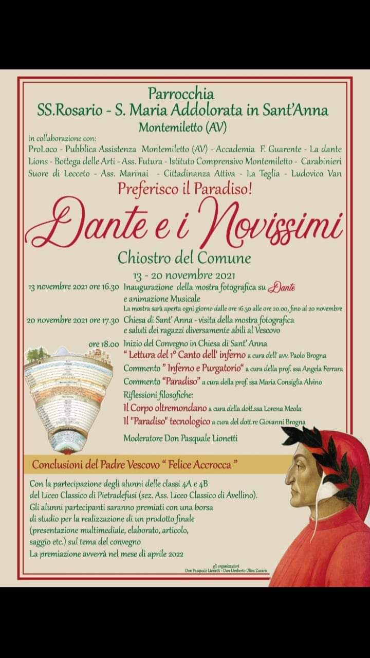 La parrocchia SS. Rosario e S. Maria Addolorata in Sant’Anna  di Montemiletto ha organizzato delle iniziative per il sommo poeta: Dante. Per il programma vedi il manifesto…