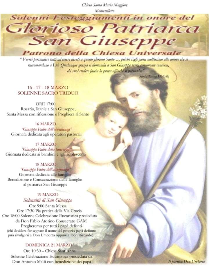Montemiletto festeggia il patrono della Chiesa universale A Montemiletto si festeggia San Giuseppe. Il programma sul manifesto…