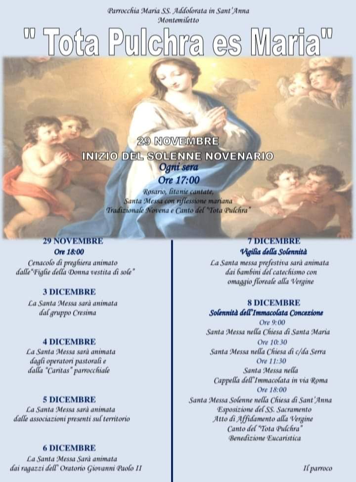 Montemiletto: solennità dell’Immacolata Concezione A Montemiletto si festeggia l’Immacolata Concezione. Per il programma vedi il manifesto…