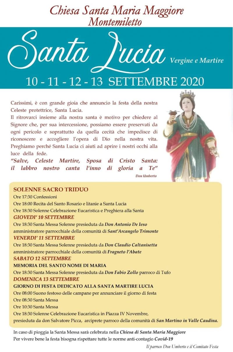 Montemiletto, triduo per S. Lucia La comunità di Montemiletto festeggia Santa Lucia, per il programma vedi il manifesto…