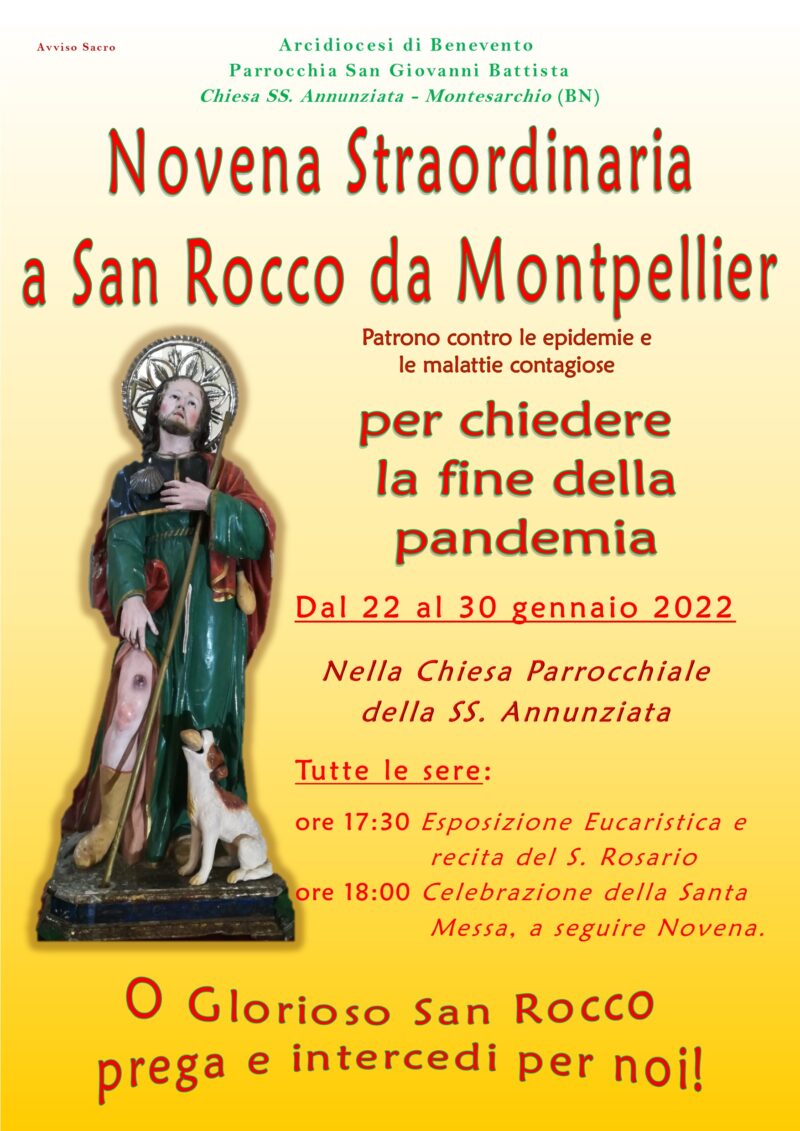 Novena straordinaria e implorazione a S. Rocco da Montpellier per chiedere la fine della pandemia;