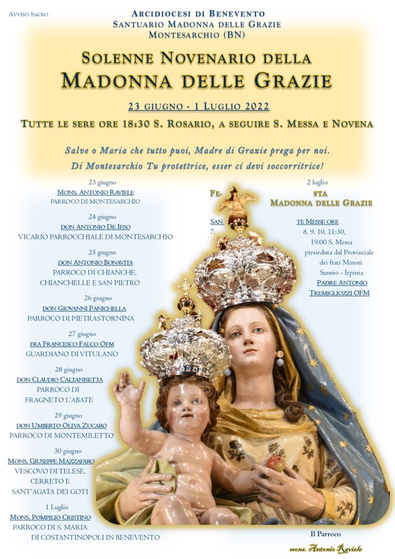 Montesarchio: novenario della Madonna delle Grazie Novena alla Madonna delle Grazie di Montesarchio. Per il programma vedi il manifesto…