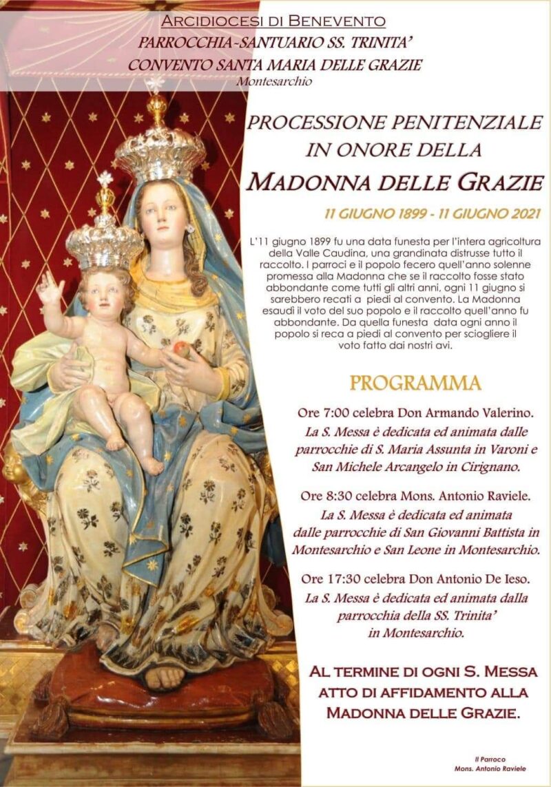 Montesarchio, processione penitenziale A Montesarchio sarà ricordata l’11 giugno la processione penitenziale in onore della Madonna delle Grazie. Per il programma vedi il manifesto…