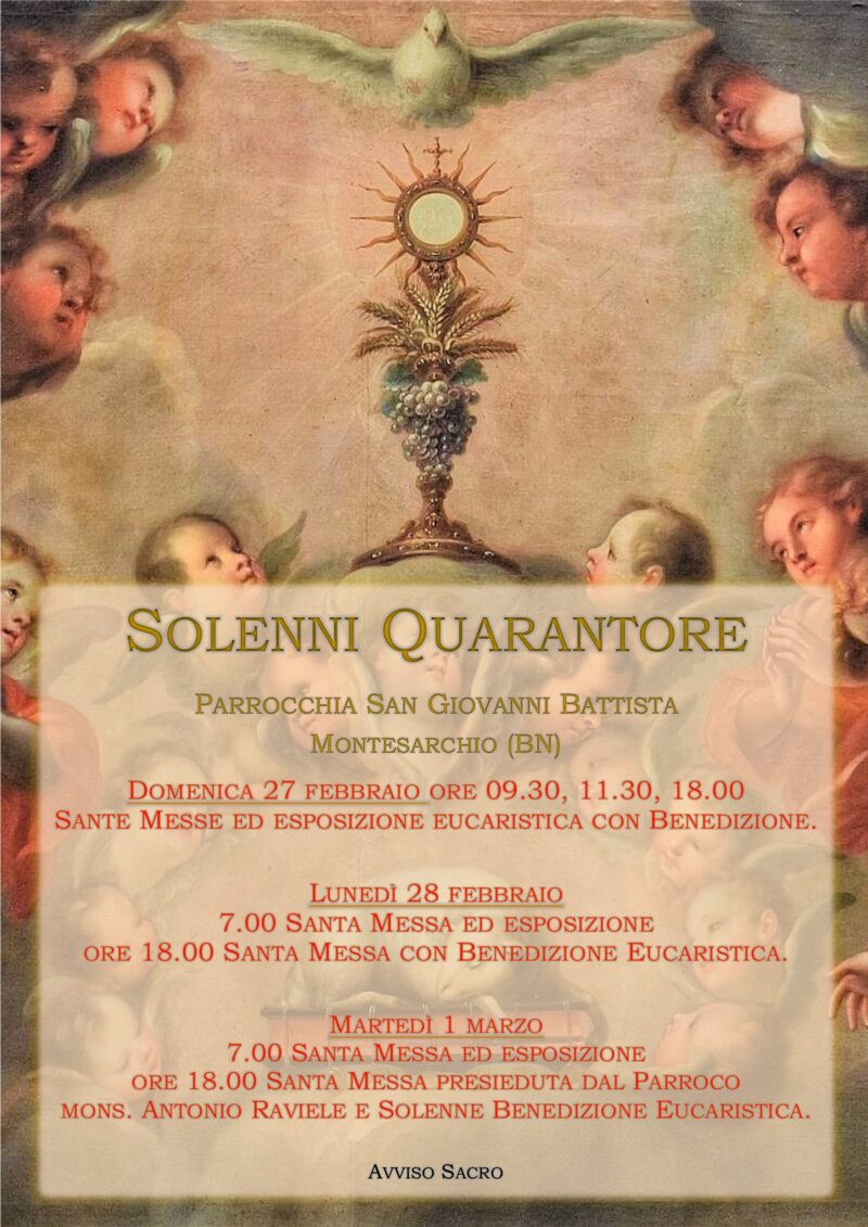 Montesarchio, solenni Quarantore La parrocchia San Giovanni Battista in Montesarchio ha organizzato le solenni sante quarantore… per il programma vedi il manifesto
