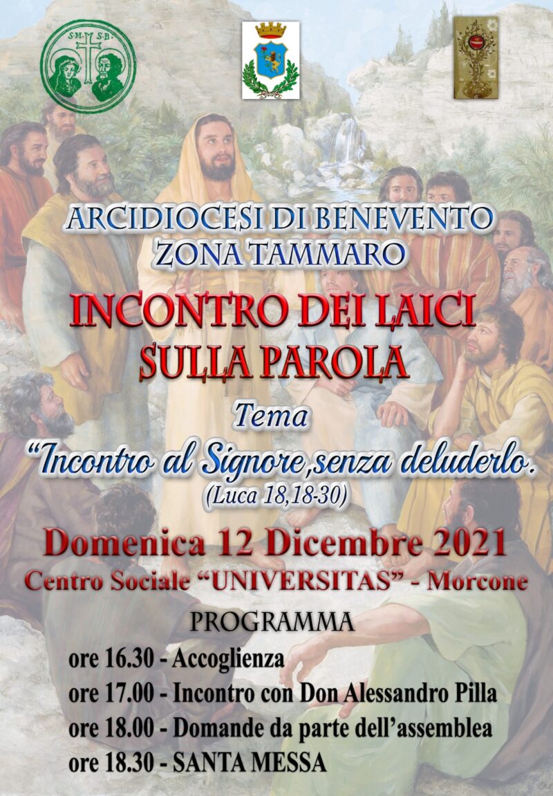 Incontro dei laici della zona Tammaro sulla Parola a Morcone sul tema: “Incontro al Signore, senza deluderlo”. Appuntamento domenica 12 dicembre 2021, alle ore 16,30, presso il centro sociale “Universitas” di Morcone.