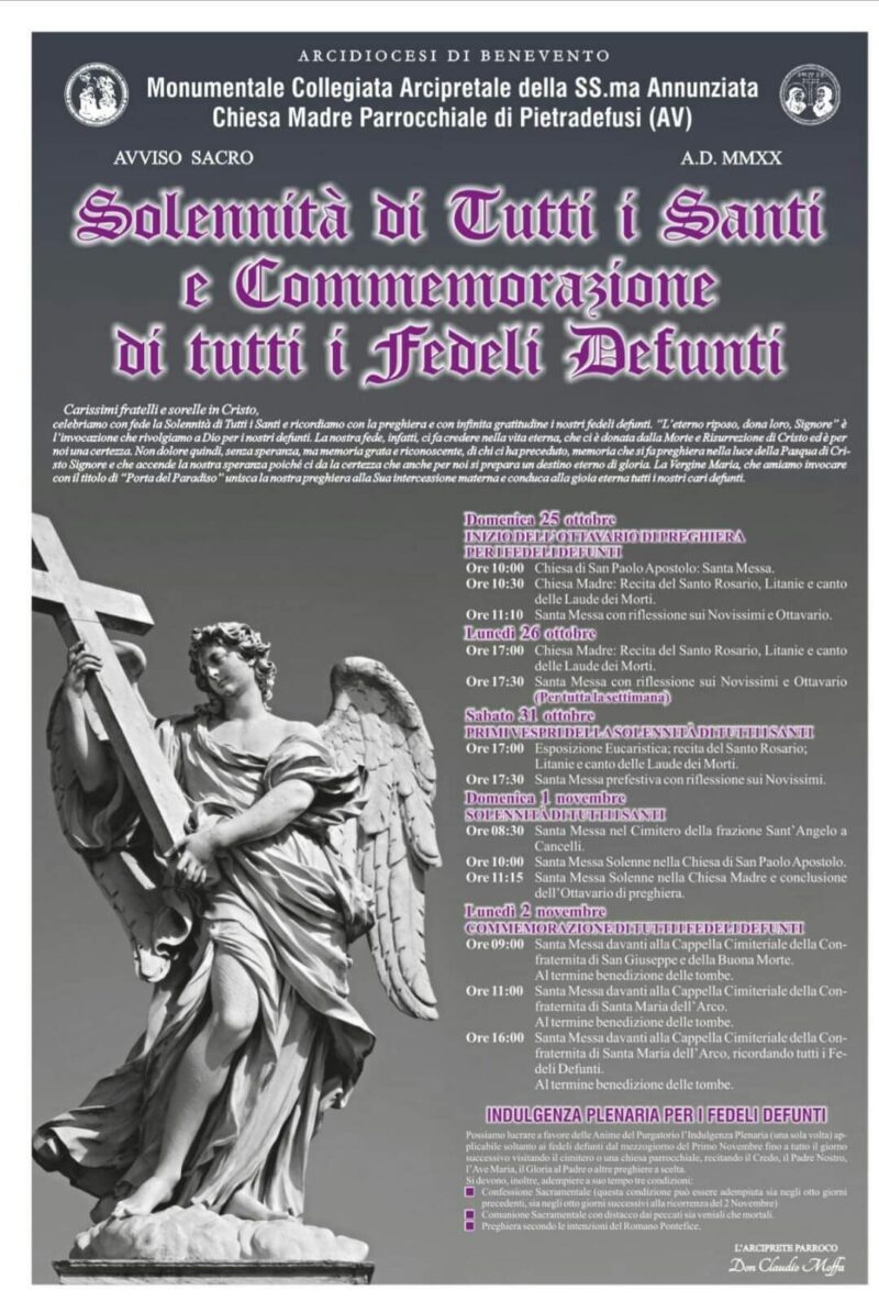 A Pietradefusi  (Av) domenica 25 ottobre inizia l’ottavario di preghiera per i fedeli defunti. Per l’intero programma vedi il manifesto stilato dal parroco don Claudio Moffa…