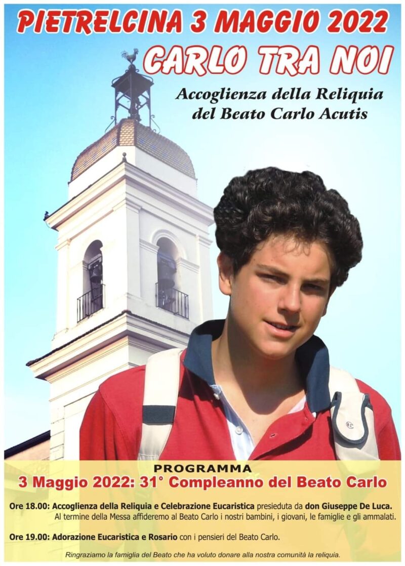 Pietrelcina: accoglienza della reliquia del beato Carlo Acutis Il 3 maggio la comunità di Pietrelcina accoglie la reliquia del beato Carlo Acutis. Per il programma vedi il manifesto…