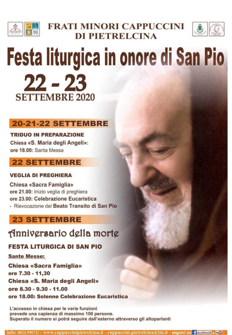 Pietrelcina, festa liturgica per San Pio Pietrelcina, festa liturgica per San Pio Nei giorni 22 e 23 settembre 2020 festa liturgica a Pietrelcina per San Pio. Per il programma vedi il manifesto…