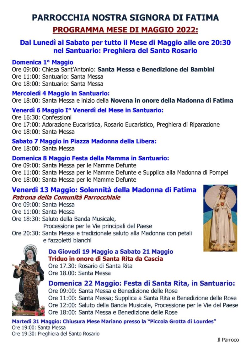 S. Giorgio la Molara: preghiere e riflessioni per la Madonna La Parrocchia Nostra Signora di Fatima di San Giorgio La Molara ha programmato il mese della Madonna con preghiere e riflessioni. Vedi il programma…