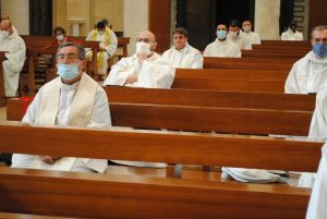 Com’è tradizione, ricordo alcune situazioni particolari, che affido alla preghiera comune: oltre monsignor Andrea Mugione e don Luigi Caturano, il Signore ha chiamato a Sé il p. Marcello Lucarelli OFM; ricordo poi, anzitutto, i sacerdoti ordinati nell’anno 2019, don Luca Cennerazzo, don Cosimo Iadanza, don Fabio Maria Atorino GAM. Inoltre, in quest’anno 2020 celebrano il loro anniversario di ordinazione don Pino Mottola, don Gaetano Santo Giuliano e p. Sabino Iannuzzi OFM (25 anni), così pure don Ermanno Ruocchio (50 anni). Sono presenti anche i nostri seminaristi: riguardo a loro, posso annunciare, per ora, che il 14 giugno prossimo Donato Della Pietra e Francesco Tranfaglia verranno ammessi tra i candidati a ricevere l’Ordine sacro.