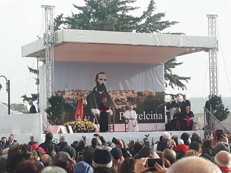 Santità, la mia voce riassume quella della Chiesa beneventana, che esprime la propria gioia e La ringrazia per la Sua visita nella patria di san Pio da Pietrelcina. San Pio è un figlio di questa terra, ne ha respirato a pieni polmoni la cultura contadina: una cultura che va all’essenziale, basata sui fatti concreti più che sulle parole. A Lei, successore di Pietro, chiediamo di essere confermati nella fede (Lc 22,32); a Lei, vescovo della Chiesa di Roma, che nella carità presiede a tutte le altre Chiese, domandiamo di essere spronati nella sequela di Cristo.