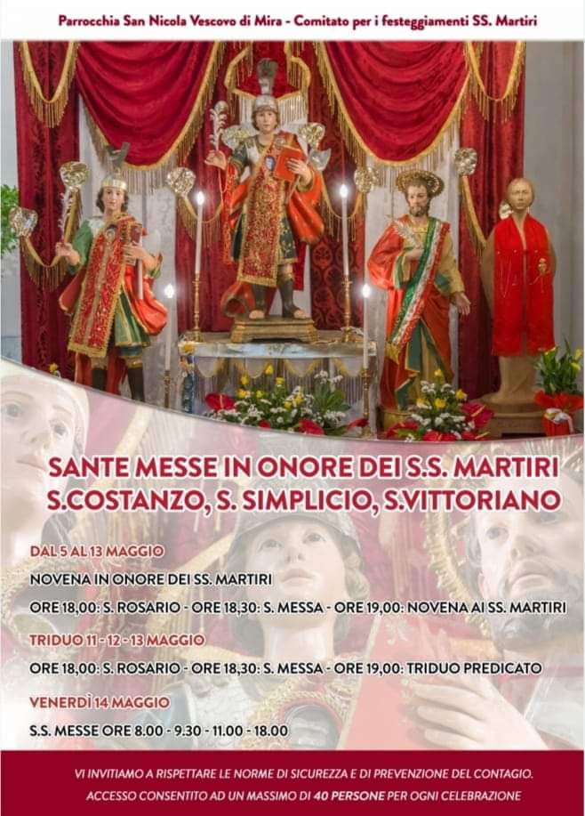 La parrocchia di S. Nicola Vescovo di Castelpoto  e il comitato per i festeggiamenti SS. Martiri hanno organizzato la festa religiosa in onore dei SS. Martiri: Costanzo, Simplicio e Vittoriano. Per il programma vedi il manifesto…