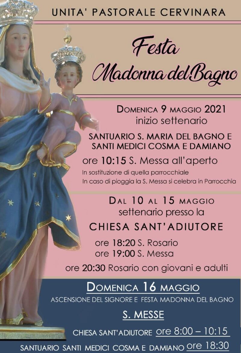 Unità pastorale Cervinara: festa Madonna del Bagno A Cervinara festeggiamenti per la Madonna. Per il programma vedi il manifesto…