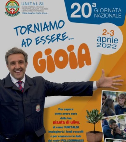 Il 2 e 3 aprile, dopo 2 anni di assenza a causa della pandemia, vivremo la XX Giornata Nazionale dell’Unitalsi dal titolo: “Torniamo ad essere gioia” . La Giornata Nazionale non è solo un momento di raccolta fondi, ma soprattutto un’occasione, anzi forse l’occasione principale, per far conoscere l’Unitalsi e tutto quello si fa nella quotidianità, oltre che nei pellegrinaggi.