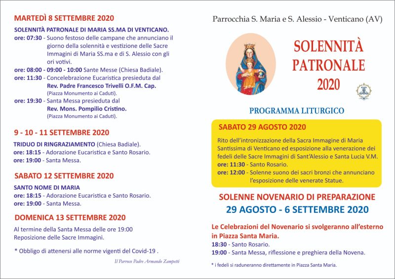 Venticano, solennità patronale Solennità patronale di Maria SS.ma di Venticano. Per il programma liturgico vedi il manifesto…