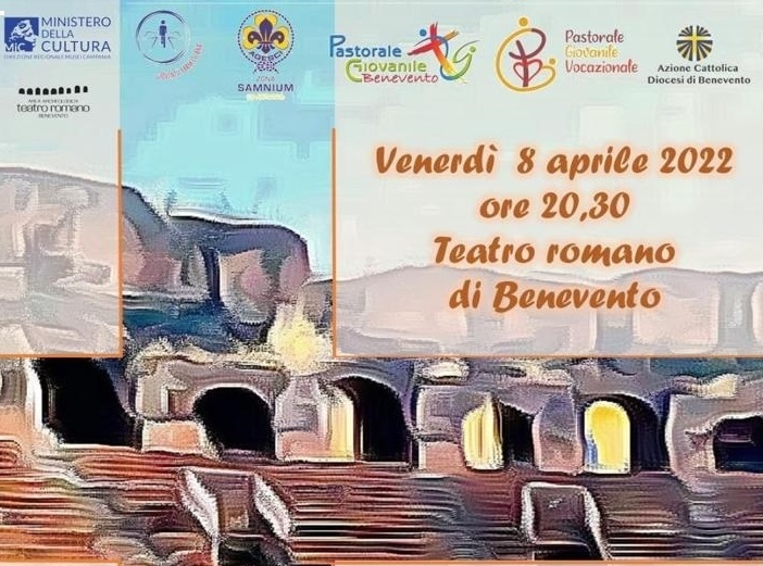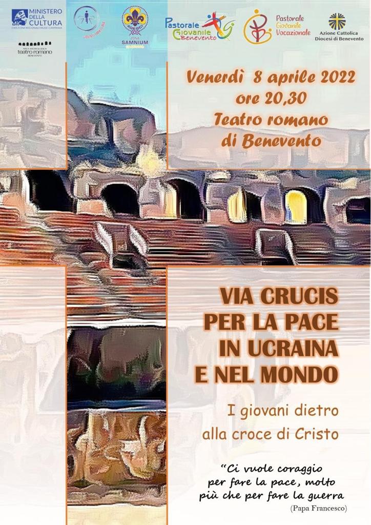 Venerdì 8 aprile 2022,alle ore 20,30, al teatro romano di Benevento via crucis per la Pace in Ucraina e nel Mondo. I giovani dietro alla croce di Cristo, un’occasione per vivere meglio lo spirito della Quaresima.