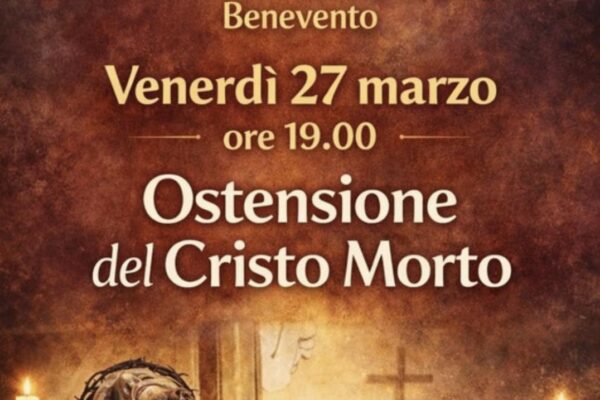 L’ostensione dell’immagine del Cristo Morto a Benevento è un momento centrale in preparazione della Settimana santa, organizzato dai Missionari del Preziosissimo Sangue. Funzione liturgica, venerdì 27 marzo alle ore 19, nella chiesa di S. Anna lungo corso Garibaldi.