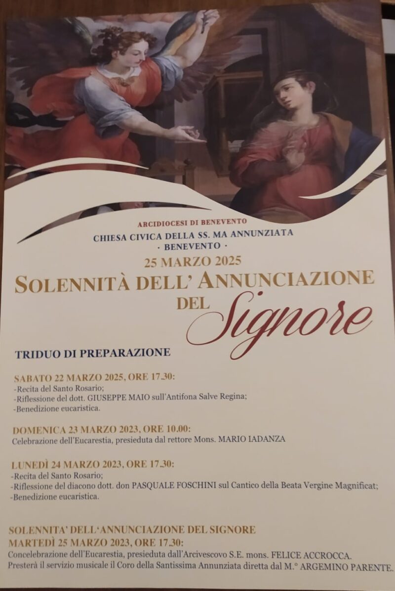 In questo cammino di riscoperta e di riappropriazione è stato predisposto il seguente programma per le annuali celebrazioni dell’Annunciazione del Signore: