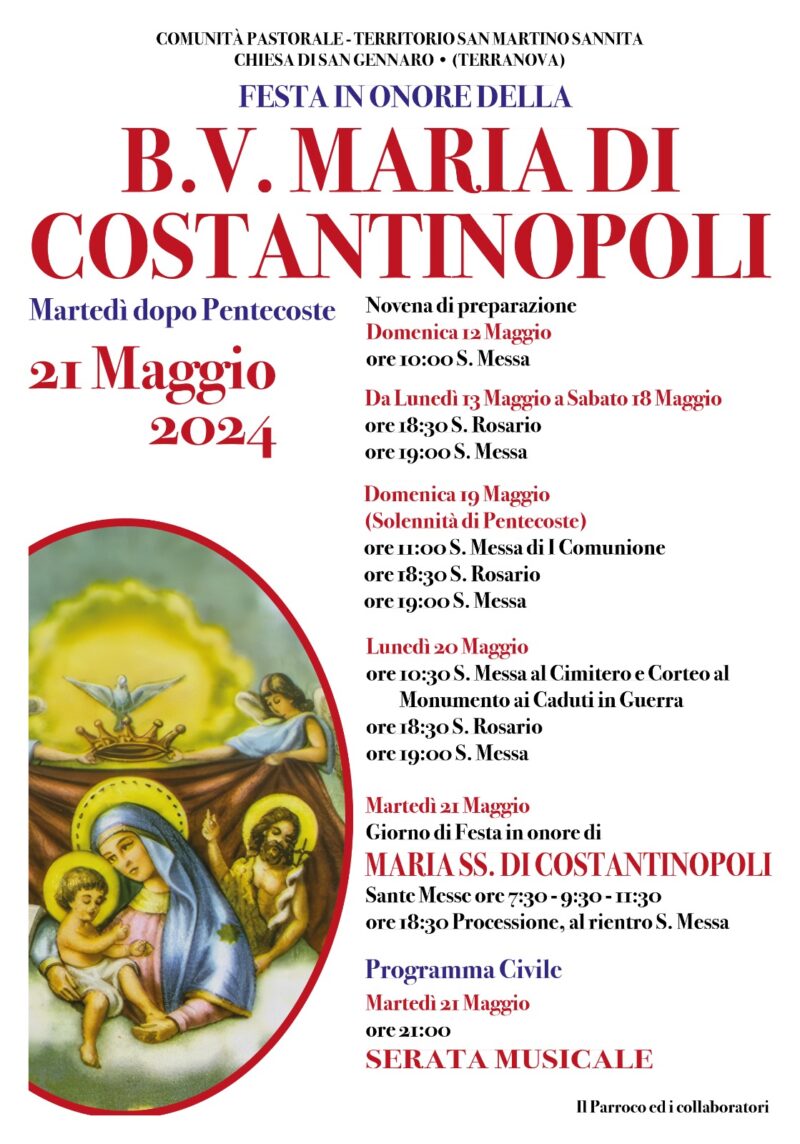 La comunità pastorale, territorio di San Martino Sannita, chiesa di San Gennaro in Terranova, guidata dal parroco don Armando Zampetti, festeggia il 21 maggio 2024, martedì dopo Pentecoste, la Madonna di Costantinopoli. Per il programma vedi il manifesto…