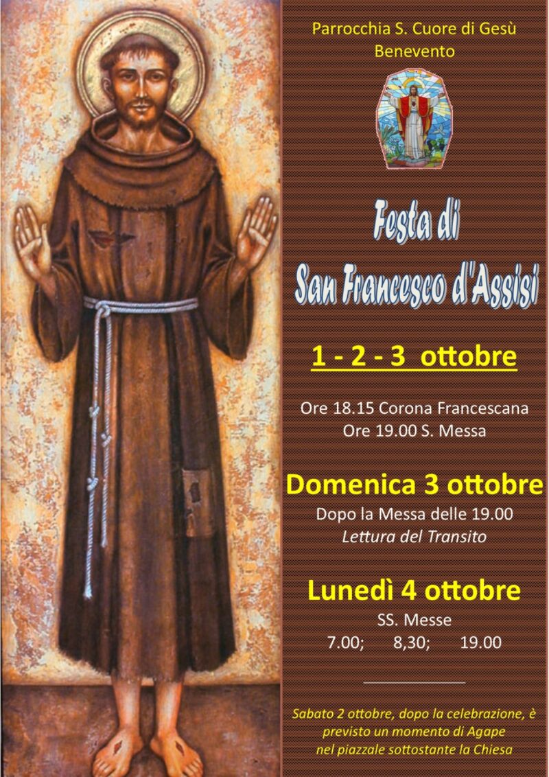 Benevento, festa di S. Francesco La parrocchia S. Cuore di Benevento festeggia S. Francesco d’Assisi. Per il programma vedi il manifesto…