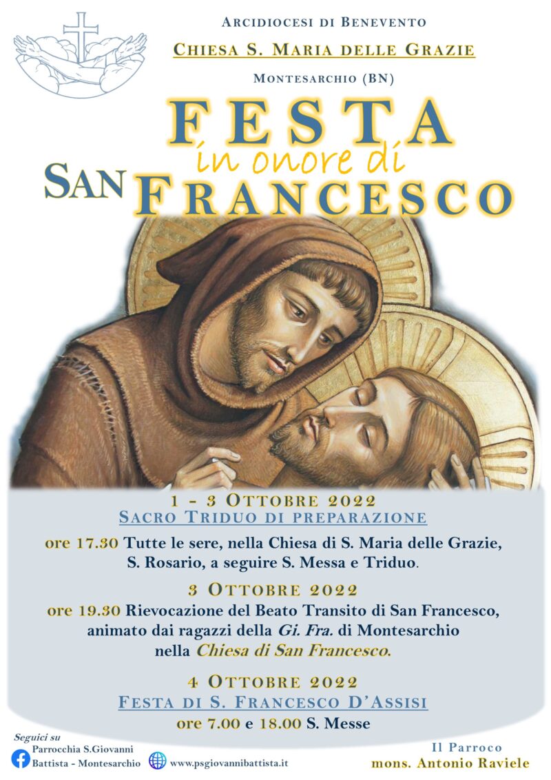 Rievocazione del Beato Transito di S. Francesco, animato dai ragazzi della Gi. Fra. di Montesarchio nella Chiesa di S. Francesco alle ore 19.30