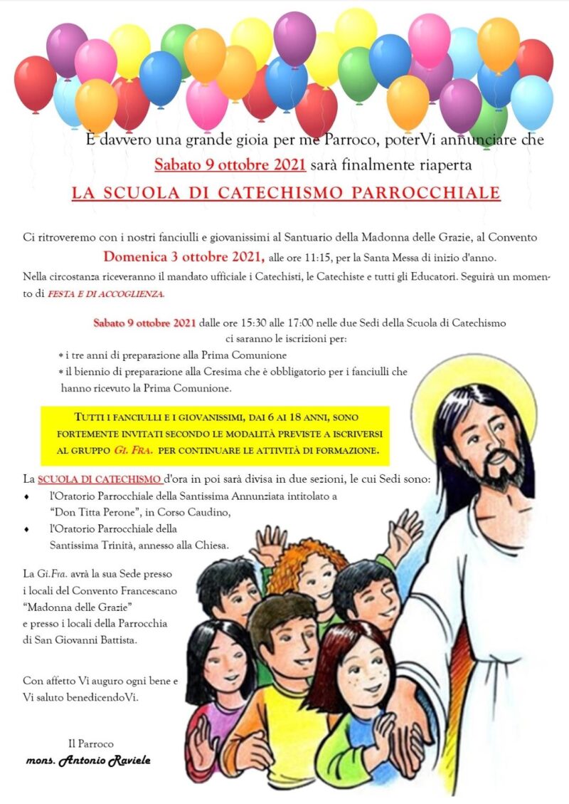 Montesarchio, ai nastri di partenza la scuola di catechismo Don Antonio Raviele ha organizzato a Montesarchio la scuola di catechismo parrocchiale, che partirà domenica 3 ottobre. Per il programma vedi il manifesto…