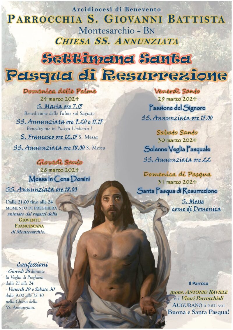 Le funzioni liturgiche della Settimana santa per la parrocchia di S. Giovanni Battista in Montesarchio… vedi il manifesto