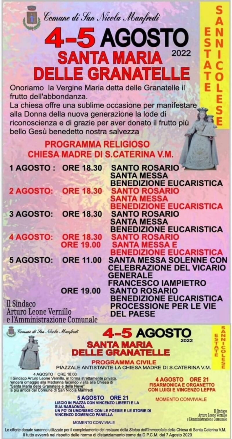 S. Maria a Toro in festa Il 4 e 5 agosto la comunità di Santa Maria a Toro festeggia S. Maria delle Granatelle. Per il programma vedi il manifesto…