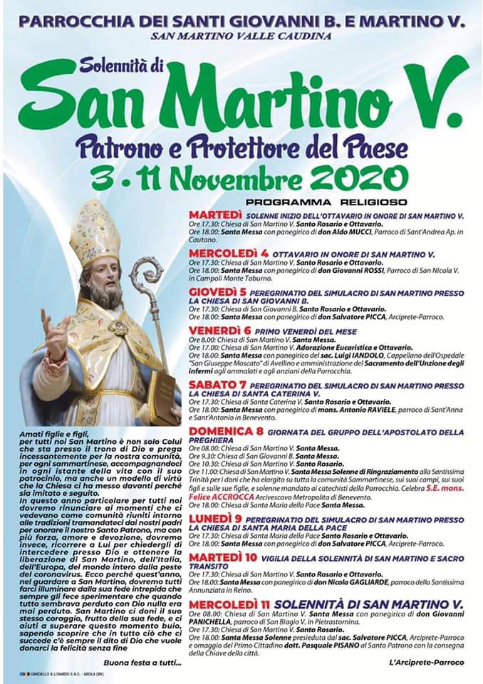 Il 3 novembre inizieremo l’ottavario di preghiera che ci preparerà alla festa del celeste patrono San Martino di Tours.Tutte le sere guiderà nella riflessione un sacerdote della zona. Alle 17.30 il Santo Rosario e alle 18.00 la Santa Messa. Per l’intero programma vedi il manifesto allegato….