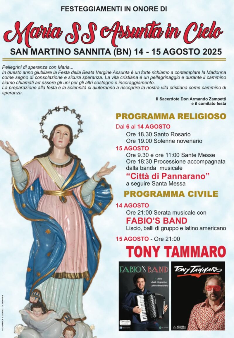 San Martino Sannita in festa, nei giorni 14 e 15 agosto 2025, per Maria Assunta in Cielo. Per il programma vedi il manifesto…