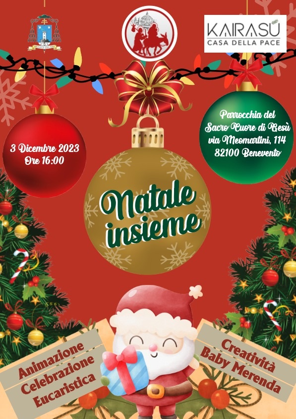 In occasione dell’arrivo del Natale l’ufficio Migrantes di Benevento, in collaborazione con l’associazione Kairasù, organizza un momento di condivisione e integrazione, domenica 3 dicembre alle ore 16, presso la parrocchia Sacro Cuore di Benevento. Ci sarà la celebrazione eucaristica presieduta dall’arcivescovo mons. Felice Accrocca e successivamente una serie di attività dedicate ai bambini.