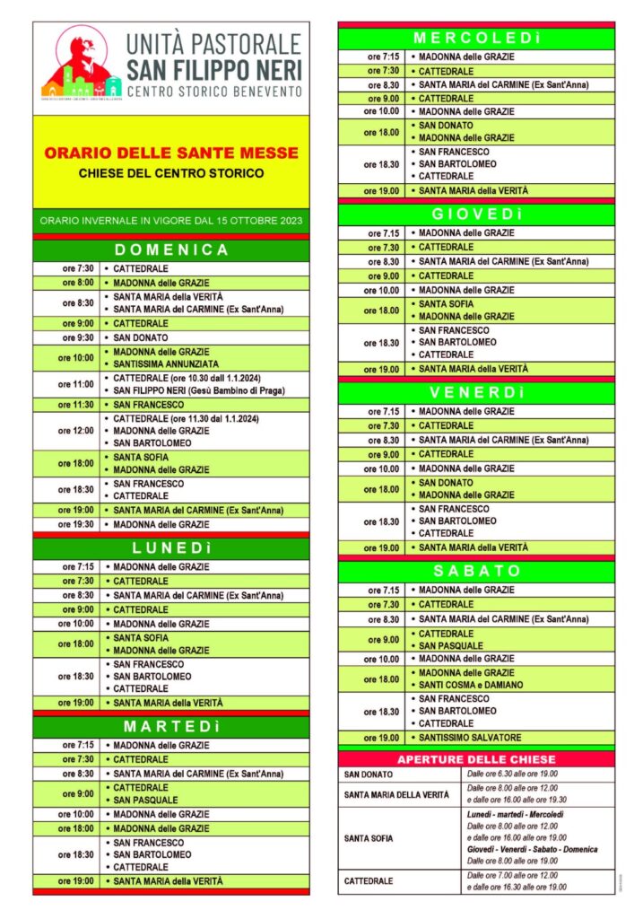 23 Ottobre 2023768 × 960Unità Pastorale San Filippo Neri: ecco gli orari di tutte le Messe e dell’apertura di tutte le chiese