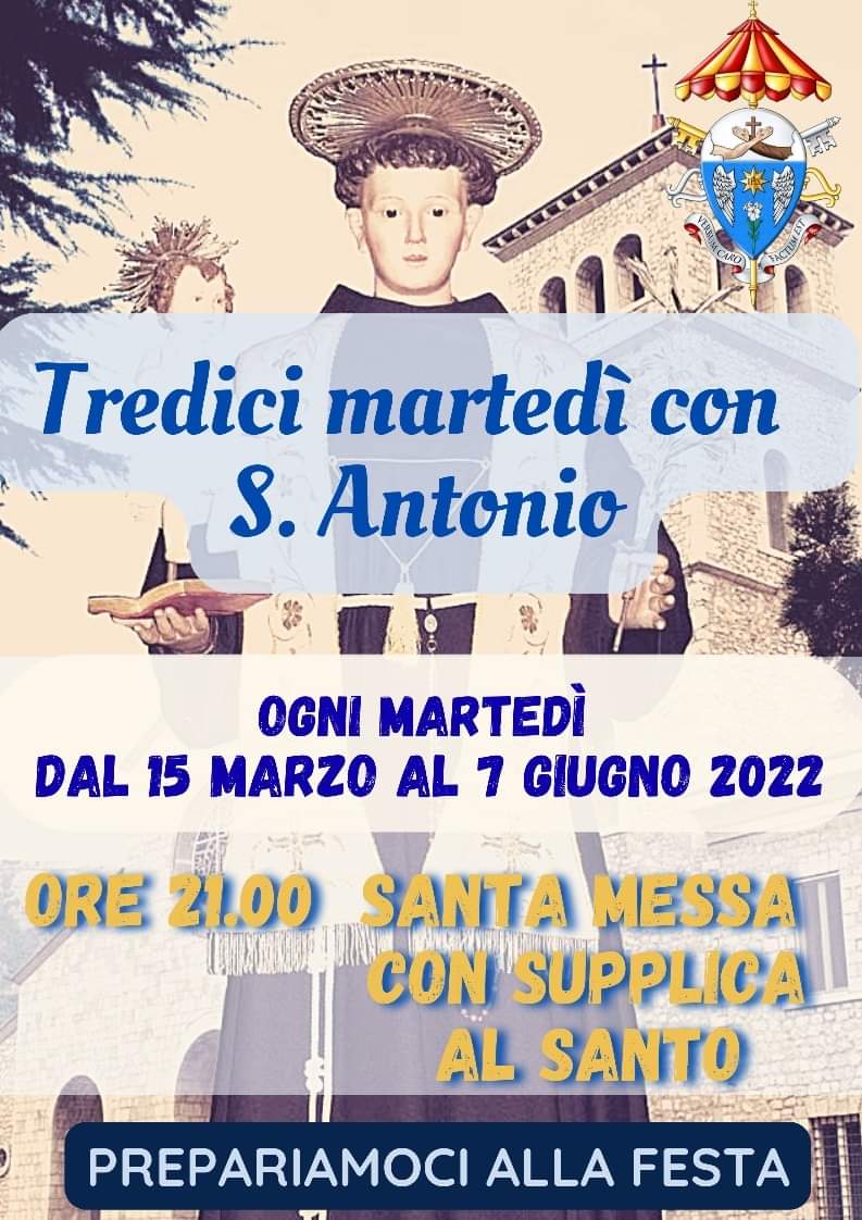 Vitulano: tredici martedì con S. Antonio da Padova Nella basilica SS.ma Annunziata e S. Antonio di Vitulano inizia l’itinerario in preparazione alla festa del santo di Padova. Vedi il manifesto…